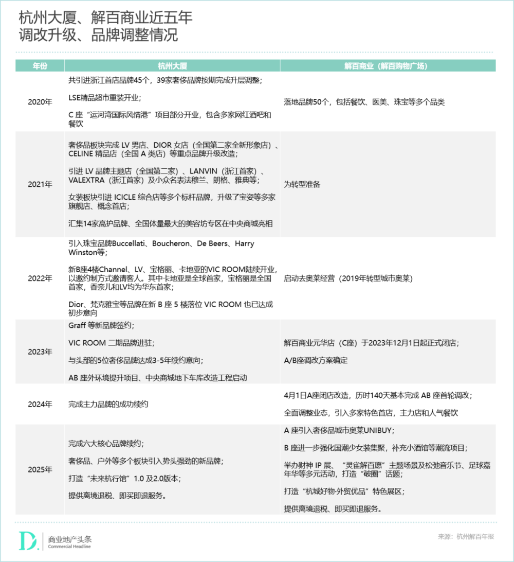 行至2024-2025年,杭州大厦全力投入品牌维护,经过多轮谈判,成功完成六大主力奢侈品牌的续约,并在2025年第二季度成功续约国际顶奢品牌启动重装扩店升级计划。